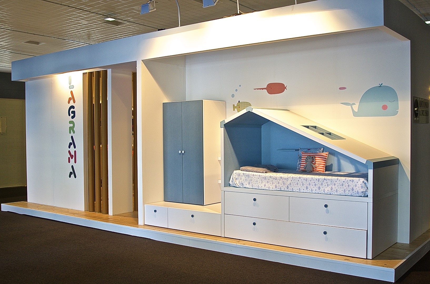 Lagrama è un’azienda spagnola che produce mobili per bambini e ragazzi. Il progetto realizzato per lo stand della Fiera del Levante di Bari del 2016, è un’occasione di sperimentazione nel mondo dell’architettura temporanea.